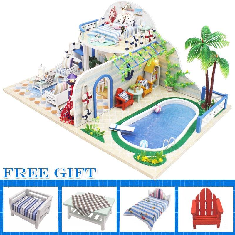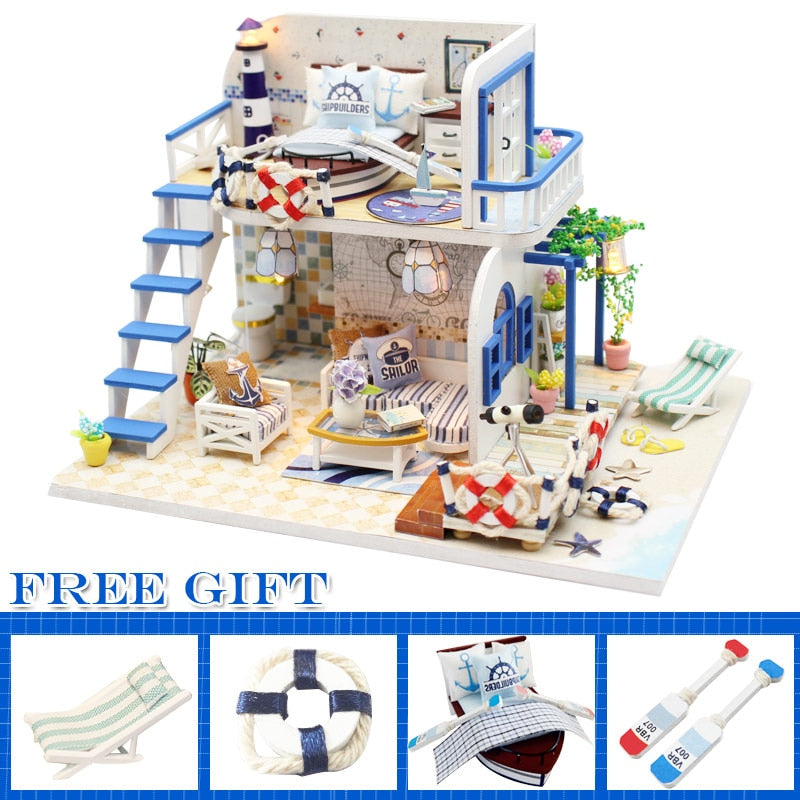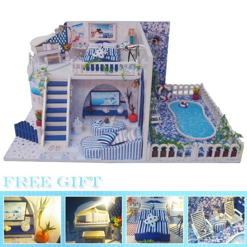 Cutebee DIY House Miniature with Furniture LED Music Dust Cover Model Building Blocks Toys for Children Casa De Boneca TD16